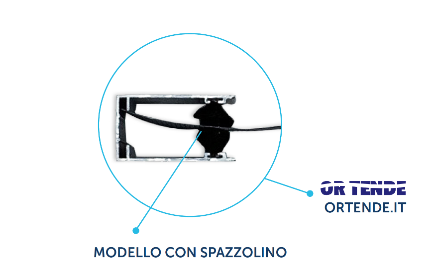 Nei modelli proposti da OR Tende all'interno delle guide è presente uno spazzolino doppio per tenere la rete tesa all’interno delle stesse, aumentandone l'efficacia antintrusione di elementi indesiderati.