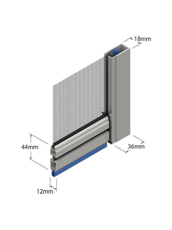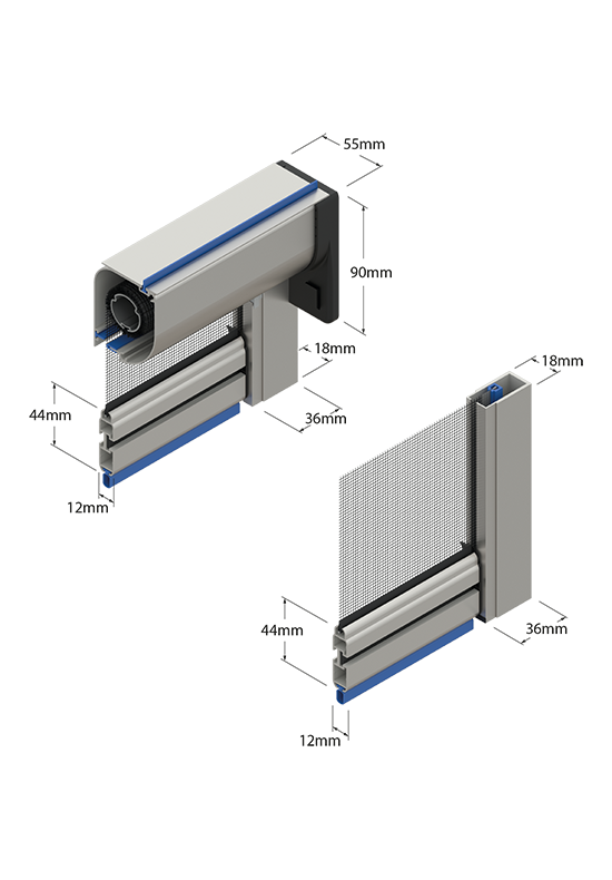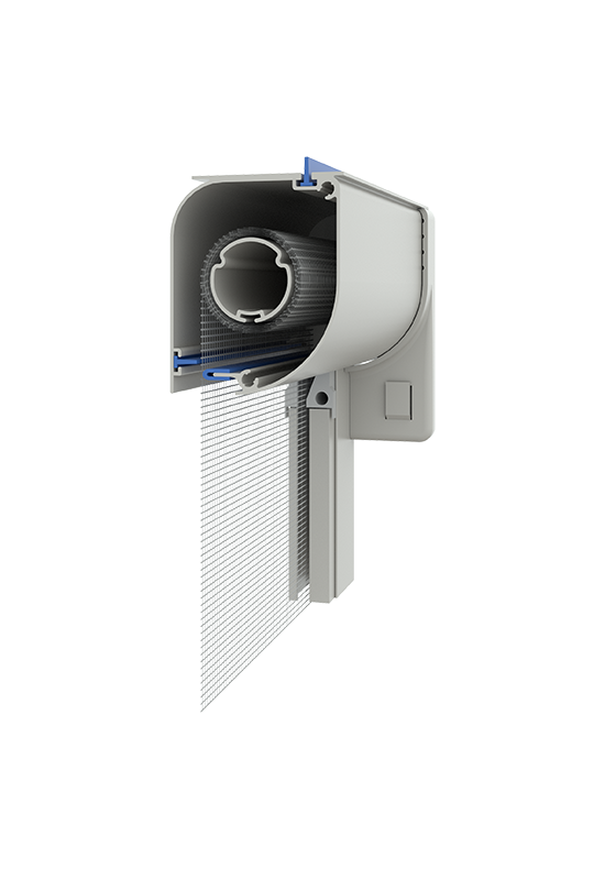 Questa zanzariera offre una soluzione pratica e all'avanguardia per tenere alla larga le zanzare e gli insetti dalle vostre finestre e porte. Il cassonetto di larghezza 50 mm, dalla forma stondata, è discreto e non invadente, ma allo stesso tempo estremamente resistente e funzionale. L'ingombro ridotto di 55 mm consente un montaggio agevole e un'ottimizzazione dello spazio, anche in presenza di eventuali fuori squadro del vano.